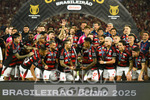 Rio de Janeiro (RJ), 03/12/2025 - Flamengo x Ceara - Clube Regatas Flamengo é o campeão Brasileiro 2025, o clube sagrou-se campeão após vitória sobre o Ceará no estádio do Maracanã, jogadores e comissão técnica levantaram a taça e comemoraram com amigos e familiares. (Foto: Carlos Santtos/Fotoarena/Agência O Globo) Esportes
