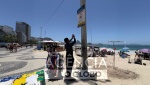 Rio de Janeiro (RJ), 21/11/2025 - Operação Verão 25/26 - Operação Verão: novas regras incluem retorno das garrafas de vidro às barracas e placas de orientação a banhistas - Agentes da Guarda Civil municipal atuam em fiscalização em pontos das zonas Sul e Sudoeste da cidade. Na foto, placa no posto 6, em Copacabana. Foto: Ana Branco / Agencia O Globo