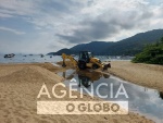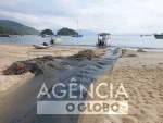 Ilha Grande (RJ), 30/12/2025 - Esgoto / Transbordamento - O turista que chegou ao Abraão hoje para curtir o Ano Novo se deparou com esgoto transbordando por toda a Rua Getúlio Vargas e o vazamento está indo direto para o mar. Foto: Domingos Peixoto / Agência O Globo
