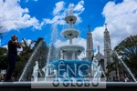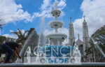 Campo Mourão (PR), 04/11/2025 - Foto do dia - O calor intenso em Campo Mourão, na Região Centro-Oeste do Paraná, levou um morador a se refrescar no chafariz, no centro da cidade. Os termômetros marcaram 29° na tarde da última terça-feira (04). (Foto: Dirceu Portugal/Fotoarena/Agência O Globo) especiais