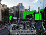 São Paulo (SP), 30/12/2025 - RÉVEILLON/PALCO/PAULISTA/SP - Público se aglomera próximo ao palco do Réveillon na Paulista 2026 para acompanhar a passagem de som e luz dos artistas. A Avenida Paulista já está parcialmente interditada no começo da noite desta terça-feira(30), véspera dos shows da virada. Neste ano também existem camarotes com vista privilegiada para o palco. (Foto: Leandro Chemalle/Thenews2/Agência O Globo) SP