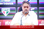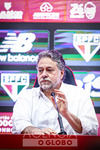 São Paulo (SP), 28/11/2025 - Coletiva de imprensa cedido Julio Casares - O presidente do São Paulo, Júlio Casares, concedeu uma coletiva de imprensa na tarde desta sexta-feira (28) no Centro de Treinamento da Barra Funda. O evento abordou diversos temas relevantes sobre o futuro do clube, desempenho da equipe e questões administrativas. (Foto: Denise Araújo/Fotoarena/Agência O Globo) Esportes