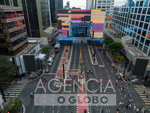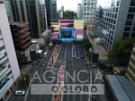 SÃO PAULO (SP), 28/12/2O25- PALCO/SHOW/RÉVEILLON/2026/DA/PAULISTA - Vista aérea da estrutura do palco, onde acontecerá o show do Réveillon na Av. Paulista, região Centro -Sul de São Paulo (SP).Neste domingo (28). (Foto: Edi Sousa/Ato Press/Agência O Globo) São Paulo